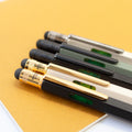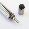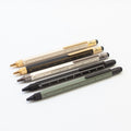 マイスターシリーズからツールペンの登場です。ボールペン、スケール、傾斜の確認が可能水平器、ドライバー、スマホやタブレットを操作できるスタイラスの5つの機能を備えた多機能ペン。スタイラスと取り外すと現れるドライバーは、上下の付け替えで+と-どちらにも対応しております。スケールは100分の1、200分の1、300分の1、400分の1となっております。まるで職人のような気分になれる、遊び心をくすぐる1本です。ギフトにも最適なパッケージ入り。