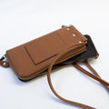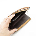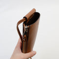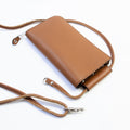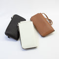 スマホの入れやすさだけでなく、財布としての使いやすさにもこだわっています。L字ファスナーで大きく開きます。下部にはマチがついているので荷物の落下を防ぎます。内側のファスナーポケットは真ん中にステッチを入れてあえて浅くデザインされています。小銭が底まで沈まず取り出しやすくなっています。ファスナーポケットの裏にはカードが5枚程度まとめて入るカードスリット付き。紙幣は二つ折りにして収納できます。付属のショルダーストラップは簡単に長さ調節ができるので、ネックポーチやマイクロショルダーとしてもお使いいただけます。完全に取り外してお財布やクラッチバッグとしても◎