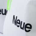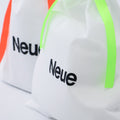 わくわくなギフトになる巾着ラッピング。ステッカーの文字は「Neueロゴ×万年筆」「Neueロゴ×HAPPY BIRTHDAY」「Neueロゴ×THANKYOU」の3種類、カラーはピンクとイエローの2色からお選びいただけます。