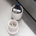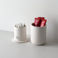 デザイン性の高い磁器製の電子タバコ専用の灰皿。特徴的なのは、縦長のフォルムは場所を取らずコンパクトながら、吸い終わったアイコスのスティックであれば約40本入るたっぷりの収納力。 筒状の本体と、ドーム型の蓋のパーツに分かれており、蓋部分にはアイコスの本体とタバコの箱がすっぽり入り、本体と組み合わせない使い方もOKです。本体と蓋を重ねることで吸い殻を隠せるのはもちろん、匂いが漏れにくく、磁器製で程よい重さがあるので屋外に置いても吸い殻が風で飛んでいくことも防ぐことができます。