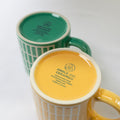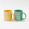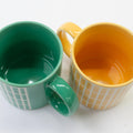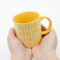 タイルをモチーフにしたマグカップ。ひとつひとつタイルのラインに撥水材を塗り、釉薬を施した部分にのみタイルのようにぷっくりと浮かび上がる技法で作られています。美しい光沢とパキッとしたカラーリングでお部屋も気持ちも明るくしてくれます。電子レンジ・食洗機使用可能なので毎日快適にお使いいただけます。焼き物の町、岐阜県多治見市で作られています。