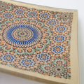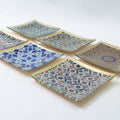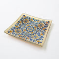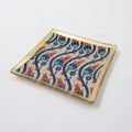 個性豊かなデザインのガラストレイ。幾何学模様やタイルなど、海外の蚤の市などに並んでいるアンティーク雑貨のような雰囲気が魅力的です。手作り品ならではの色むらや擦れなどの個体差も魅力の一つです。裏面は鮮やかな金色の仕様となっております。 玄関に置いて鍵用のトレイとして、リビングに置いてアクセサリートレイとしても◎10cmのスクエア型なので置く場所に困りません。お香やパロサント用のトレイとしてもお使いいただけます。真鍮のアイテムやアジア系のアイテムとの相性抜群!組み合わせギフトにも人気なアイテムです。