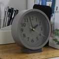 小ぶりな盤面に小気味よく数字をちりばめた置き型の電波時計です。針の長さや太さ、数字のサイズ、色の構成などを吟味し、見やすく心地よい佇まいの時計となりました。真鍮色の秒針が盤面を引き立てます。