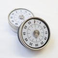 ステンレス製アナログキッチンタイマーです。本体をくるくると回して時間をセットする電池不要の機械式で、最大60分まで設定可能。残り時間は赤いシートで文字盤に表示されるので視認性が高く、感覚的にわかりやすいのが特徴です。背面にはマグネットがついているので、冷蔵庫やラックなどに取り付けできます。お子様の勉強用や時間管理などにもおすすめです。
