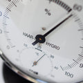 スタイリッシュなTFA Dostmann社の温湿度計。室内の温度と湿度を調整することで、快適な生活環境を作ってくれます。真鍮製のベゼルにクロームメッキを施しています。シンプルなデザインながらも存在感があるのでインテリアのワンポイントになります。また、裏面に引掛け穴がありますので壁掛けとしてもご使用いただけます。電池不要なところも嬉しいポイント◎