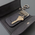 5つの鍵が収納できる定番型キーケース。スマートキーはカラビナに装着が可能なので、車通勤の方にもおすすめです。革の経年変化を楽しめるシンプルなデザイン。