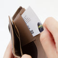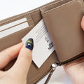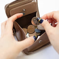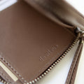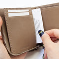 L字ファスナーで大きく開くタイプのお財布。小さめながらもしっかり分けて収納することができます。コインケース、カード収納部、お札収納部にそれぞれカードの収納ができます。カードは合わせて5枚収納可能。見やすく取り出しやすいボックスタイプのコインケースです。内側にはノイエのロゴがさりげなく刻印されています。
