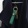 鍵をまとめておけるキーホルダー。ゴールドのカラビナには丸カンが3つ付いているので鍵を取り付けることができます。