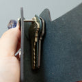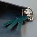 鍵をネジ式の特殊金具で固定する。最もコンパクトなキーケース「キーオーガナイザー」 。「シャックル」と呼ばれる作業現場などで使われている金具を服飾用にアレンジしており、ネジ棒に鍵を通して1枚の革で包み込む構造になっています。様々な場所に取り付けができるようにナスカンフックもついています。一般的なサイズの鍵で約4本程度装着できます。今までにない驚くほどに小さなキーケースです。