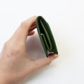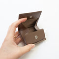 上質なイタリアンレザーのコインケース。大きく口が開くので見やすく使い勝手の良いコインケースです。スナップボタンなので中身が飛び出る心配もありません。背面にはミニポケットがあり、切符など小さいものを収納しておくことができます。ポケットの裏地部分には、本体と同系色のシャンタン生地を貼って、外から見えない部分も丁寧に作り込まれています。コインは約20枚収納できます。