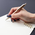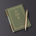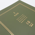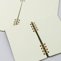 高級感のある全面箔が目を引く表紙のリングノート。表紙は丈夫で耐久性に優れたPP素材を使用しています。国内最高級の筆記専用紙「OKフールス紙」に、ページ分割可能なガイドが付いた2mm方眼タイプ。手に当たらず書きやすいリング製本になっているのでストレスなく書き続けることができます。