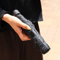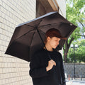 風速30m/sの試験に合格した高強度の骨採用した折りたたみ傘。風を受けても変形しにくく、折れずに元も形に戻ります。ポリカーボネート+ナイロンの骨がやわらかくしなり、骨折れを防ぎます。15デニールのとても薄い生地ですが、生地裏面にポリウレタン樹脂コーティングを施しており、遮光率/遮蔽率は100%、UPF値50+の最高等級です。遮熱効果も兼ね備えています。撥水レベル5級を取得した生地を使用しているので、晴雨兼用でお使いいただけます。
