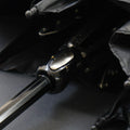 収納袋はスリット入りで傘を出し入れしやすい形状なっています。さらにカラビナ付きなので、濡れた傘をバッグの外に掛けての持ち運びが可能です。