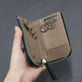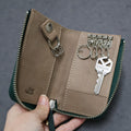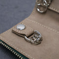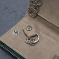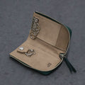 大切な鍵をしっかり保護してくれるキーケース。自宅、職場、車の鍵をまとめて持ち歩くことができます。開いて右側には4本取り付けることができ、下の袋部分に鍵の先端を差し込めばじゃらじゃらしません。左側には小さめの金具が3つ付いており、スナップボタンなので必要なければ取り外しておくこともできます。