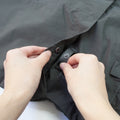外側にはホックボタン付きの大きめポケットが2つあります。携帯や財布などすぐに取り出したい物の収納にはもちろんペットボトルや折り畳み傘など高さのある物も収納可能です。