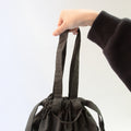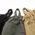 ナップサック、ハンドバッグ、トートバッグの3Wayで使えるナップサック。さらっとした触り心地で軽めの素材感です。定番で合わせやすいブラック、オリーブがかったひとクセあるグレー、コーディネートの差し色になるカーキの3色展開です。カジュアルな印象のナップサックですが、落ち着いた色合いで大人の方におすすめなナップサックに仕上げました。