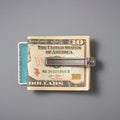 少し変わった雰囲気のマネークリップ。カードの収納も可能で最大で紙幣20枚、カード7枚まで収納可能です。