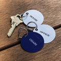 真鍮製のプレートに塗装加工を施したキーフォブ。HOUSE、OFFICE、CHARIの3タイプありますのでそれぞれの鍵にご使用ください。