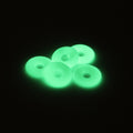 太陽光、スマートフォンのライト等様々な光源から蓄光することができるリングパーツ5個セット。キーリングやジップに付けることで暗い状況でも素早く認識することができます。一般的に流通している蓄光材と比べると驚くほど明るく、長くても12時間程度の発光時間が多い中、最大24時間発光し続けることができます。アウトドアギアの目印、キーリング、USBドライブ、鞄のジップなど日常生活の様々なシーンで活躍してくれます。必要に応じて油性マーカーで書き込んだり(※)、好きな長さにカットすることも可能なので用途によって様々な使い方ができます。(※)シリコン素材につき、擦るとインクが落ちる可能性がございますのでご注意ください。