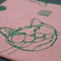 ワイヤーアートで作られたネコのモチーフを凹凸感のある刺繍で再現した可愛いハンカチ。メロウの縁取りがちょっとしたアクセントになっています。柔らかなダブルガーゼなので肌触りがよく使い心地も抜群◎ランチボックスを包むファブリックにもおすすめです。