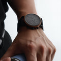45mm径のビッグケースが特徴的なメンズコレクション「JOHANN」。2カウンタークロノグラフとデイト機能を備えており、オンオフ問わず幅広いシーンで身に着けられる実用的なモデルです。ドイツらしいミニマルなデザインもカーブホルツの魅力。