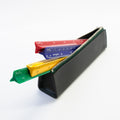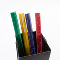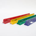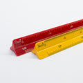 図面を描いたり、測るときに欠かせない三角スケール。アルミではなくプラスチックなので、金属音がせず快適にお使いいただけます。元気がもらえるパキっとしたカラーリングは、デスクやペンケースでも自判別しやすい良さも持っています。インジェクション特殊インキング技術による目盛りの精度・インクの取れにくさは一級品です。