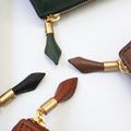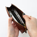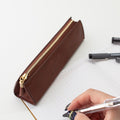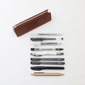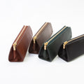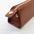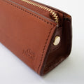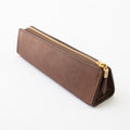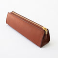 たっぷり収納できるトライアングル型のペンケース。安定感があるのでデスクで自立してくれます。マチもしっかりあるのでペン好きの方にもおすすめ◎ペンは約8本収納できます。ファスナーの引手にはノイエオリジナルのチャーム付き。ステーショナリーを中心にセレクトしているノイエならではの万年筆をモチーフにしたデザインになっています。革の裁断面は耐久性と美しさを高めるコバ仕上げになっています。