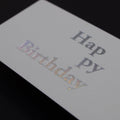 ギフトに添えて贈りたい、Neueオリジナルのミニカード。繊細な箔押しを施した贈る相手を選ばないシンプルなデザインに仕上げました。裏面は白紙になっているので、たくさんメッセージを書いてもよし、一言だけ書いても◎HappyBirthdayとThankyouの2種類あるので用途に合わせてお選びください。カラーは箔押し定番のゴールド・シルバーに加え、キラキラと細かく光るホログラム、推しカラーにもおすすめなローズピンク・サンセットオレンジ・キウイゴールド・シルキーコバルトの全7色となっております。送る相手の方に合わせてお選びください。箔がちらっと透けて見えるトレーシングペーパーの封筒がセットになっています。封筒に入れずにそのままギフトに添えても可愛いですよ。