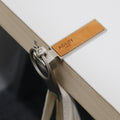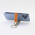 出先でバッグの置き場所に困らないバッグハンガーホルダー。テーブルに取り付けてバッグやリュックを引っ掛けて置くことができます。スマホスタンドとしてもお使いいただけます。縦置き・横置きどちらの向きにも対応しているので、一つ持っていると便利なアイテムです。耐荷重は約3.5kgです。ロゴの刻印されているレザー部分は、経年変化が楽しめるモストロレザーを使用。使っていくうちに深みとツヤが増していきます。