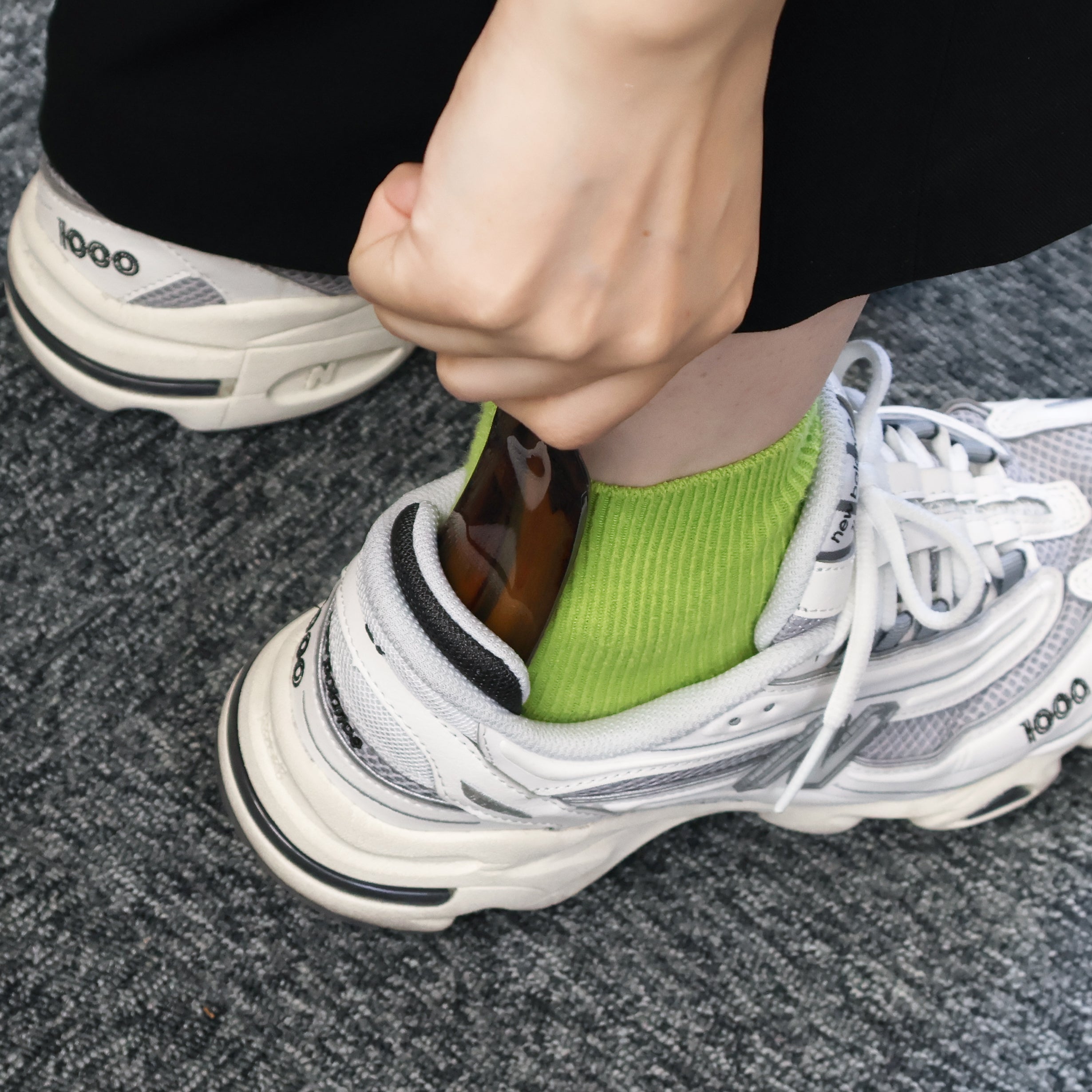 ボディとプリントのカラーのコントラストが印象的なシューホーン。靴べらというモチーフにおいて、木材や金属などさまざまな素材が使われているものの、デザインで差別化されたものは実は少ないアイテム。生産は、80年間にわたってmade in USAを守り続け、様々な企業のアドバタイジング(広告)用のシューホーンを提供しているカリフォルニアの老舗メーカーの別注タイプです。「ちょうどいい」バランスがコンセプトであるANAheimのアイテムとして、海外の日用品のような雰囲気をまとったプロダクトは雑貨好きの心をくすぐります。コンパクトなサイズに加え、ハンドル部分にはホール(穴)付き。玄関の棚の上や靴箱の中に収納するのはもちろん、扉につけたフックに掛けられるのも意外と便利なポイント。軽量かつ高品質なので出張や旅先先にも持っていきたいプロダクトです。