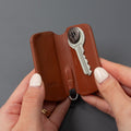 カギをすっきりと持ち運べる薄型のレザーキーケース。毎日使うカギをまとめて収納でき、ポケットを傷つけることなく収まります。標準サイズのカギ2~4本を収納可能です。マグネット式開閉でしっかり収納できます。車のカギやキーフォブを装着できるDリング付き。
