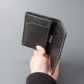 クラシックなデザインと驚きの収納力が特徴の「Note Sleeve」。スマートな二つ折りのスタイルで、カードや紙幣、小銭がすっきり収まります。