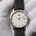 ミニマルなデザインで、身に着けていることを忘れるくらいスリムで軽いメンズウォッチ。ベーシックで落ち着いたデザインは様々なシーンで活躍します。メンズモデルは、デイトカレンダー付き。