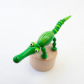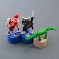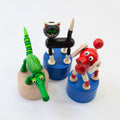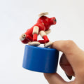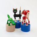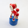 チェコの玩具メーカーDETOA(デトア)社によるプッシュトイ。土台の裏側を下から指で押し込むことで内部に通った糸のテンションが緩んで人形が倒れ、指を離すと起き上がる伝統的な木製玩具。ギミックの楽しさはもちろん、ハンドペイントで絵付けされた温かみのある雰囲気も魅力です。素朴で愛嬌のある動物たちはお部屋にオブジェとして飾ってみるのもおすすめです。
