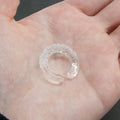 2、イヤーカフを耳の内側の軟骨を挟み込み、落ちないようにすこし下のほうへ移動させ装着します。 3、外すときは耳の上部の厚みのない部分へと動かして、ゆっくりと外してください。ガラスを強く引っ張るとガラスが割れてしまう可能性がありますので、お取り扱いにはご注意ください。