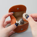 ガバっと開いて取り出しやすい馬蹄型のコインケース。手のひらに乗るコンパクトサイズで小さいバッグやポケットにも入ります。ボタン付きなのでこぼれる心配もありません。裏側にはポケットがあるので、レシートやお札を折って収納することができます。キャッシュレス派の方にもおすすめなアイテムです。