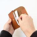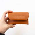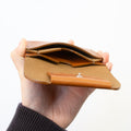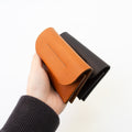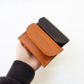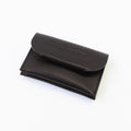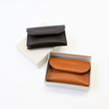 2室の収納部を備えたカードケース。フラップのデザインが特徴的です。長く愛用できるベーシックな2色展開。ホックボタン付なので、カバンの中で中身が飛び出る心配もなく快適にお使いいただけます。本革ならではの経年変化も楽しめます。