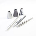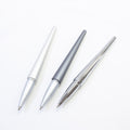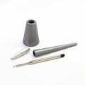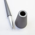 アルミ素材を使ったシンプルなデザインのボールペン&ペンスタンドです。マグネットが内蔵されているのでペンを収める時に、カチッとスムーズに収納できます。ペンはなめらかな曲線状にデザインされておりグリップがなくても安定感があります。マットなシルバー・グレー、ツヤ感のあるシルバーの三色展開です。見た目のスタイリッシュさだけでなく、使いやすさも兼ね備えた優れものです。リフィルはパーカータイプと互換性があります。
