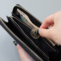お札もカードもたっぷり収納できる長財布。しっかり分けて収納できるので、カードが多めの方におすすめ◎ラウンドファスナータイプなので、大きく開き中身の出し入れもしやすい仕様になっています。ファスナー部分のカラーはブラックがシルバー、ダークグレーとシルバーがゴールドになっています。