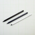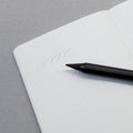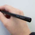 削らず書けるメタルペンシル。メタルペンシルは、芯が黒鉛と金属を含んだ特殊芯で作られており、筆記時に紙との摩擦で生じる黒鉛と金属の粒子が紙に付着することで筆跡となる、鉛筆のようで鉛筆とは違う、全く新しい筆記具です。芯は約2H鉛筆相当の濃さになります。(※当社比。紙の種類によって濃さが変わります。)芯の摩耗が著しく少なく、削らなくても長い時間書き続けることができます。筆記に集中できるため、速書きなどにも最適です。