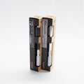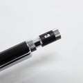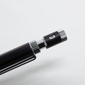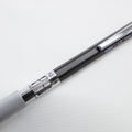 好みに合わせて、ガイドパイプと芯の出寸法を調節することができる優れものです。ガイドパイプはグリップ部分を回転させると長さを調節でき、完全に収納することも可能できます。グリップの上にあるダイヤルを回すと、一度に出る芯の長さも変更できます。適度な重量感と持ちやすいローレットグリップは高級感を感じさせてくれます。芯硬度表示(2B~4H)も切り替えもノックネジを回すことで簡単に変更できます。各所の調節機構の機械美が引き立つデザインは使うたびに便利さを実感します。