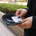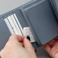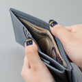 封筒をモチーフにしたデザインのお財布。蓋を開けた内側にはノイエのロゴがさりげなく刻印されています。カードは6枚収納可能で、、カードを取り出さなくてもそのまま改札のタッチにも反応します。コイン収納部は取り出しやすいボックスタイプを採用。ボタンでしっかり留まるので、カバンの中で中身が散らばる心配もありません。可愛さと使いやすさを兼ね備えています。