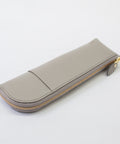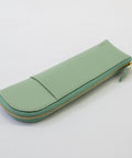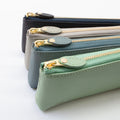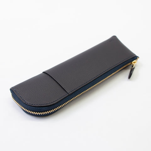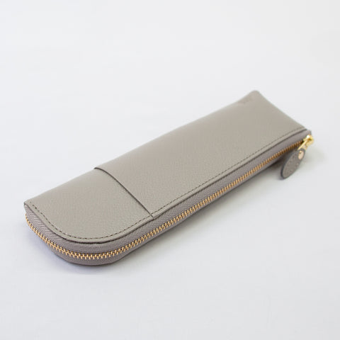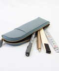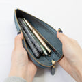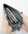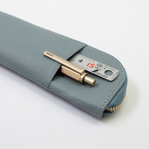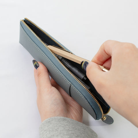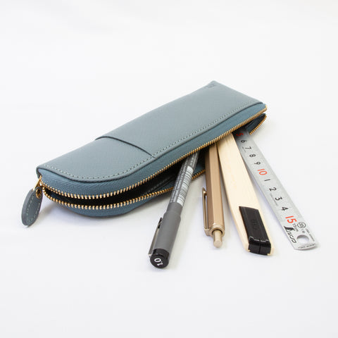 スリムで持ち運びやすいラウンドファスナーペンケース。必要な筆記具だけをかさばらずに持ち運びできます。マチのないつくりなのでバッグの中でも邪魔になりません。外側にポケットを設けているので、すぐに使いたいペンや物差しを収納することもできます。通常のペンなら7~8本、細いペンなら9~10本ほど収納できます。