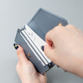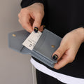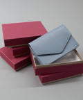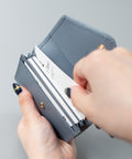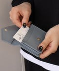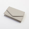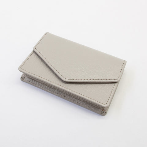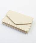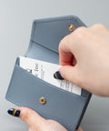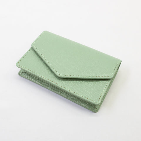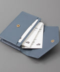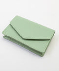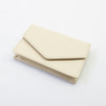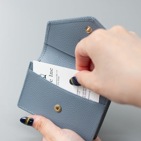 封筒をモチーフにデザインした名刺入れ。メイン収納部は2つに分かれておりそれぞれ名刺が約10枚ずつ収納できます。裏面にもカード収納できるスペースがあるので、ICカードや定期券などよく使うカードの収納にも◎カードを取り出さなくてもそのまま改札のタッチにも反応します。スナップボタンでしっかり留まるので、カバンの中で散らばる心配はありません。