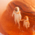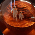古典的なスノーグローブに現代的なひねりを加えた火星モチーフのマーズダストグローブ。とても細かなスノーが舞い、火星の砂嵐を連想させます。片面には親子の宇宙飛行士、もう片面にはマリネリス渓谷とオリンポス山の詳細な地形を含む火星の惑星図が示されています。
