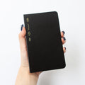 ノートの横幅を狭めたスリムサイズのノート。シンプルなデザインで筆記しやすく、コンパクトなので持ち運びにも適しています。薄い紙を採用しているため、全部で192ページあるにも関わらず薄さ8mmというスリムさで、バッグの中でもかさばりません。布クロスを採用した表紙や糸かがり綴じの製本方法により、表紙や背が柔らかく開きやすい設計です。1日1ページずつ記入しても半年使えるページ数(192ページ)と最低限の要素だけを載せたシンプルで自由度の高いデザインを兼ね備え、ビジネスからプライベートまであらゆるシーンの多彩なニーズに応えます。
