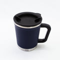 真空二重構造を採用し、保温保冷機能を向上させました。容量はインスタントコーヒーや紅茶を注ぐのにちょうど良い300ml。さまざまな持ち方に対応し手に馴染むデザイン。男性でも女性でも使いやすい大きな持ち手が嬉しいポイントです。