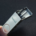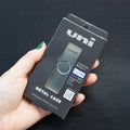 フルメタル製ならではの重量感とスタイリッシュな外観、スライド開閉の操作性に優れたケースになっています。ケースにスプリングを内蔵することでスライド開閉の動きをアシストし、心地よい操作感を生み出します。スクエアな形状やアイコンとなっている正面の円形のくぼみなど、既存の「uni(ユニ)」のデザインコンセプトを維持しながらスタイリッシュな外観に仕上げています。