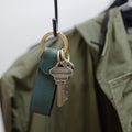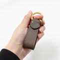 本革ならではのハリのあるしっかりとした素材がワンポイントになる本革のキーホルダー。小さめのリングが付いているので複数の鍵をまとめて持ち歩くことができます。金具には真鍮無垢を使用しており、真鍮ならではの経年変化を楽しめます。内側にはさりげなくノイエのロゴが素押しで刻印されています。男女問わずお使いいただけるデザイン・カラーバリエーションとなっております。