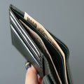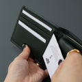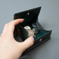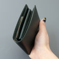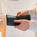 コンパクトさと収納力を兼ね備えた二つ折りのお財布。カードは6枚収納可能。カード収納部の裏側にもポケットがあるので、カードだけでなくレシートや使う機会の少ないカードをまとめて収納できます。お札収納部は2つに分かれています。コイン収納部は使い勝手の良いボックスタイプを採用。スリムなのでストレスなくポケットやカバンに入れて持ち歩くとこができます。内側にはノイエのロゴが素押しで刻印されています。